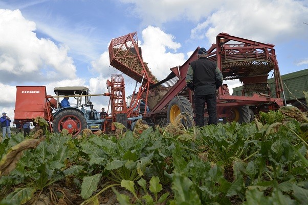 Hier sieht mit den Eicher-Unisuper 400 mit Rübenroder in Funktion: